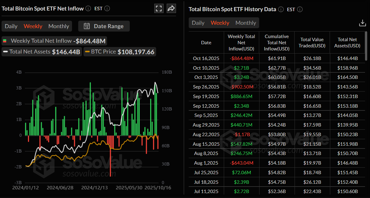 El precio de Bitcoin (BTC) continúa cotizando en rojo, por debajo de 105.000$ en el momento de escribir el viernes, habiendo corregido casi un 9% hasta ahora esta semana. Las tensiones geopolíticas renovadas alimentaron el retroceso en BTC, y el cierre del gobierno de EE.UU. presionó los activos de riesgo. A pesar del retroceso, los analistas creen que la corrección podría presentar una oportunidad de compra a medio plazo a medida que las condiciones del mercado se estabilizan y las tasas de financiación se normalizan.