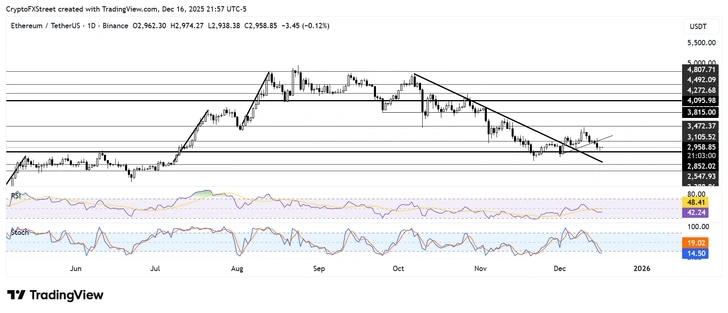 Pronóstico del precio de Ethereum: Las direcciones activas caen a niveles de mayo en medio de la reanudación de la presión vendedora en EE.UU.