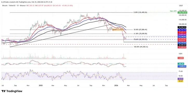 El precio de Bitcoin ha estado consolidándose en un rango entre 65.729$ y 71.746$ desde el 7 de febrero. BTC ha disminuido un 2% hasta ahora esta semana y, a partir del miércoles, se está negociando por debajo de 68.000$, acercándose al límite inferior de consolidación. Si BTC cierra por debajo del nivel de consolidación inferior en 65.729$, podría extender la caída hacia el nivel de soporte clave en 60.000$.