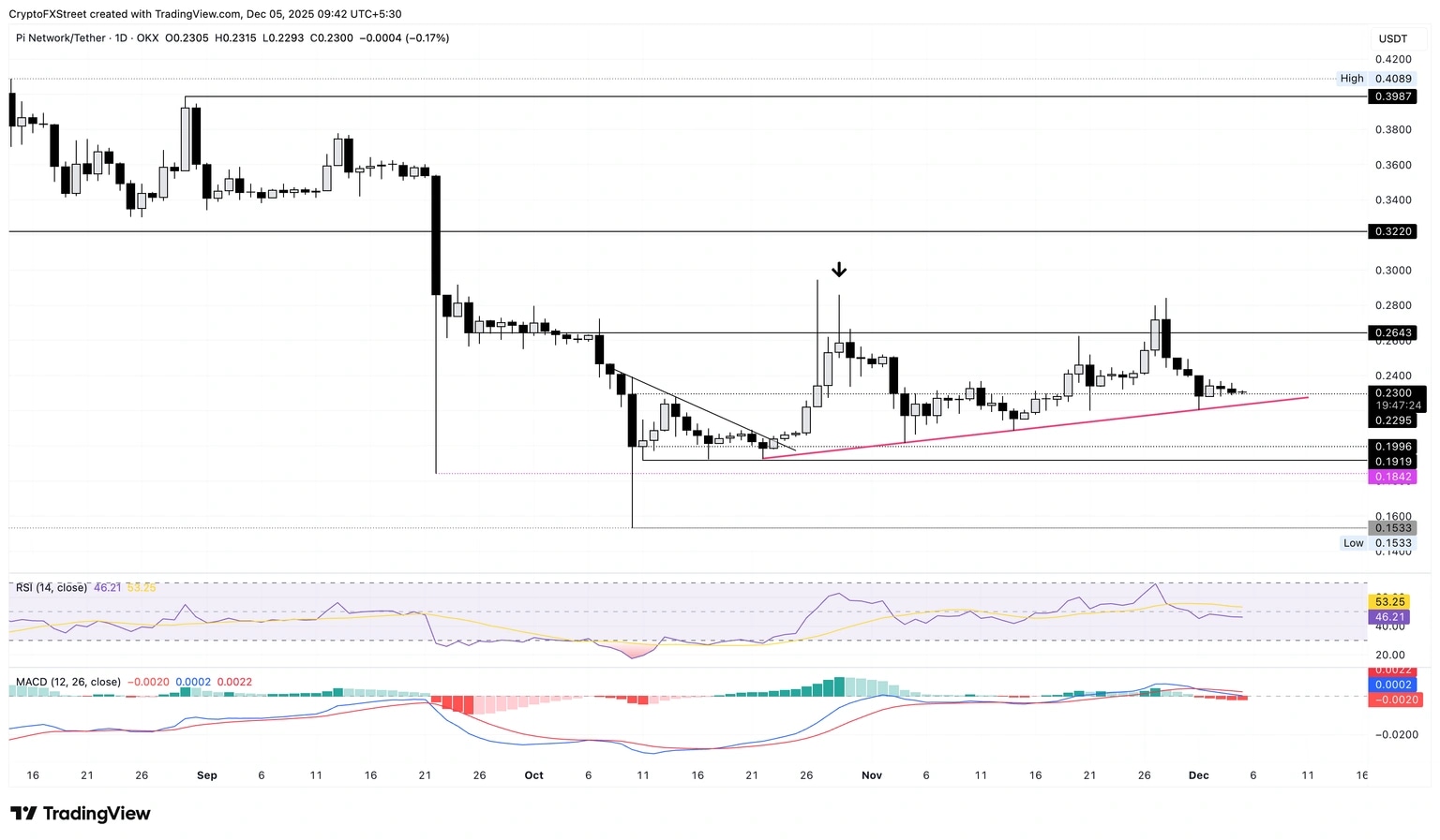 Pronóstico del Precio de Pi Network: La racha bajista se acerca a la línea de tendencia de soporte crítico
