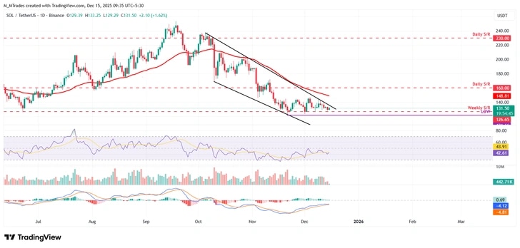 El precio de Solana (SOL) se sitúa por encima de 131$ en el momento de escribir estas líneas el lunes, acercándose al límite superior de un patrón de cuña descendente, a la espera de una ruptura decisiva. En el lado institucional, la demanda de fondos cotizados (ETFs) de Solana al contado se mantuvo firme, empujando los activos totales bajo gestión (AUM) a casi 1.000 millones$ desde su lanzamiento. Además, el panorama técnico sugiere una posible ruptura al alza, con los alcistas apuntando a niveles por encima de 160$.