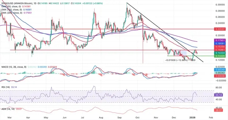 Dogecoin (DOGE) está cotizando a la baja al momento de escribir el viernes, reflejando un repentino aumento en la volatilidad tras la publicación del informe de Nóminas no Agrícolas (NFP) de Estados Unidos (EE.UU.). La Oficina de Estadísticas Laborales (BLS) informó que el NFP de EE.UU. aumentó en 50.000 en diciembre, por debajo de las expectativas del mercado de 60.000.