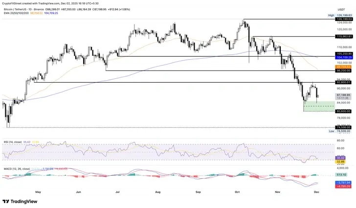 Bitcoin (BTC) cotiza por encima de los 87.000$ en el momento de escribir, tras un inicio bajista de diciembre en medio de una contracción en el sector manufacturero de EE. UU. y la posibilidad de una subida de tipos de interés por parte del Banco de Japón (BoJ) en su próxima decisión de política monetaria. En conjunto, esto podría impactar negativamente en los carry trades basados en el Yen.