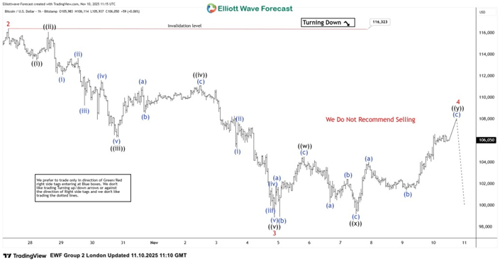 En este artículo técnico vamos a examinar los gráficos de ondas de Elliott de Bitcoin BTCUSD publicados en el área de miembros del sitio web. BTCUSD nos ha dado recientemente una recuperación de 3 ondas que encontró vendedores como se esperaba. En esta discusión, desglosaremos el pronóstico de ondas de Elliott y presentaremos el área objetivo.
