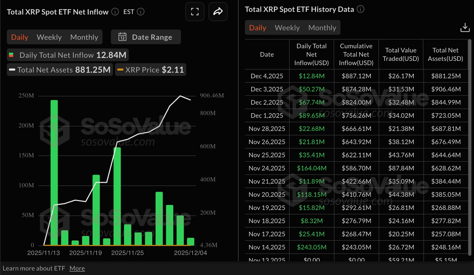 Ripple (XRP) está extendiendo su caída por segundo día consecutivo, cotizando a 2.06$ en el momento de escribir el viernes. El sentimiento en torno al token de remesas transfronterizas continúa rezagado a pesar de las entradas constantes en los fondos cotizados en bolsa (ETFs) de XRP al contado.