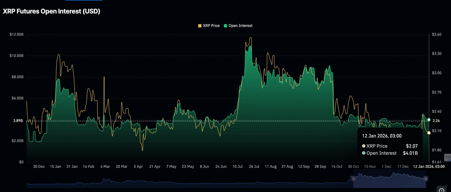 Ripple (XRP) se está negociando a la baja hacia 2.00$ en el momento de escribir este artículo el lunes, presionado por el declive del interés minorista. A pesar de los flujos constantes hacia los Fondos Cotizados en Bolsa (ETFs) relacionados, XRP enfrenta riesgos a la baja crecientes que podrían empujar su precio por debajo de 2.00$.