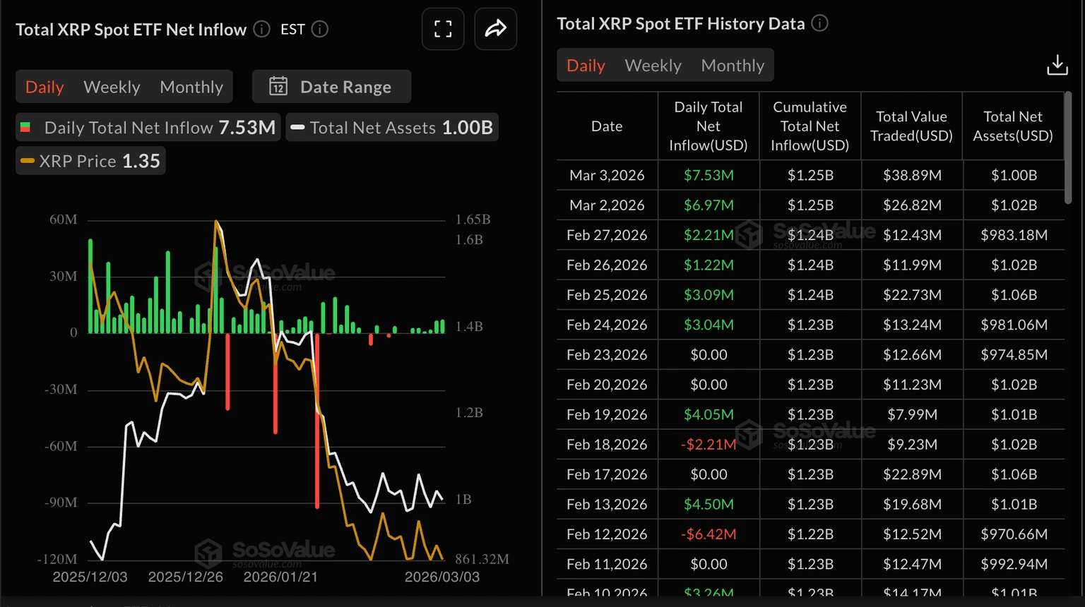XRP sube junto a sus pares a medida que los ETFs atraen flujos