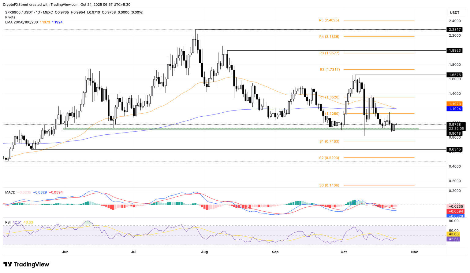 SPX6900 lucha por recuperar el nivel psicológico de 1$ a pesar del rebote del 9% el jueves desde la zona de demanda de 0.9018$. En el momento de escribir, SPX cotiza por encima de 0.9700$, manteniéndose en las ganancias del jueves.