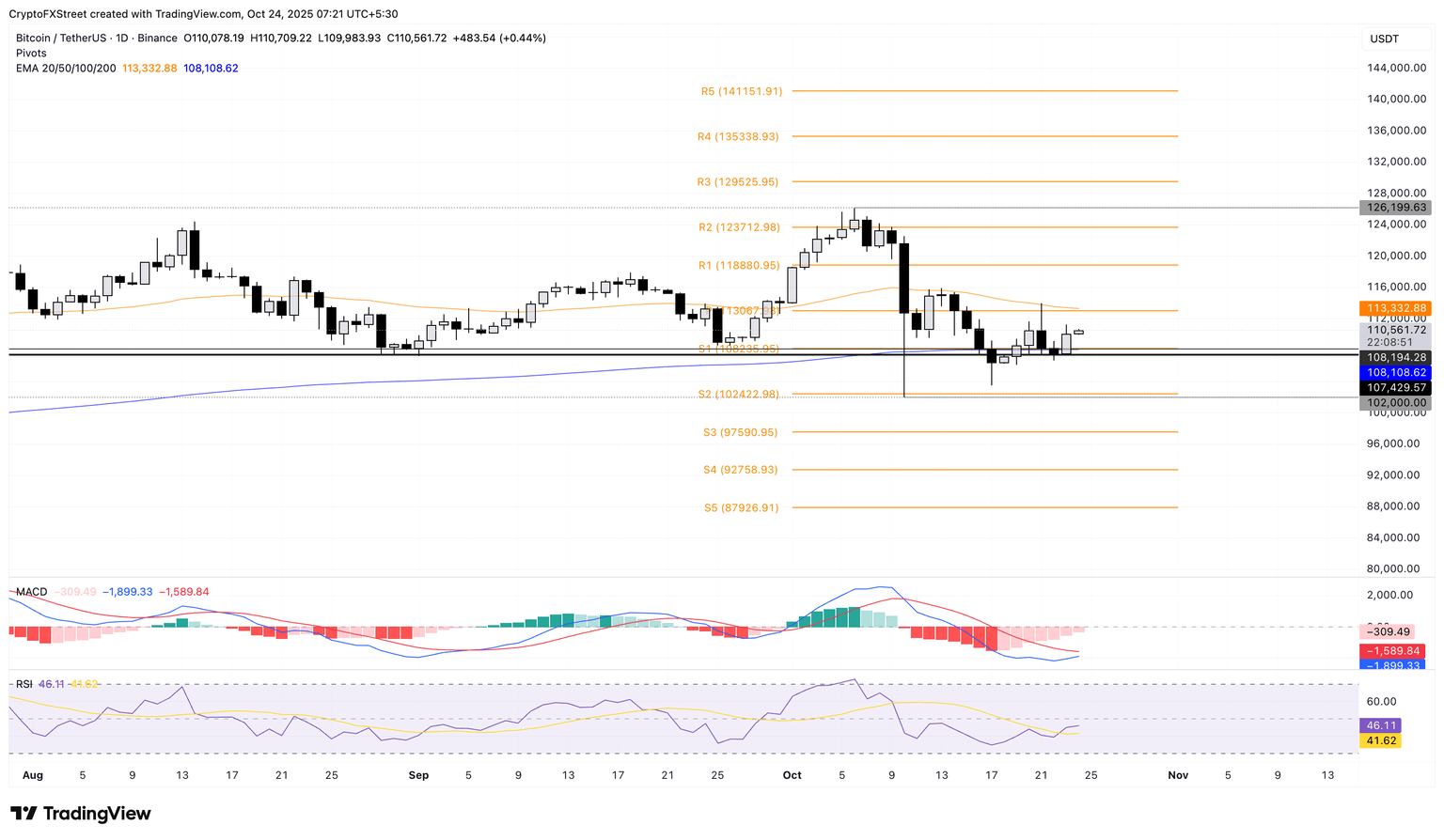 Bitcoin cotiza por encima de 110.000$ en el momento de escribir el viernes, tras un aumento del 2% el día anterior. El rebote en Bitcoin podría enfrentar resistencia en la media móvil exponencial de 50 días en 113.334$, alineándose con el punto pivote central.