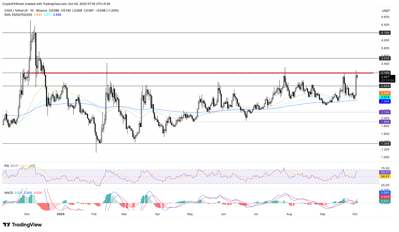 El repunte de PancakeSwap enfrenta un obstáculo clave en 3.165$