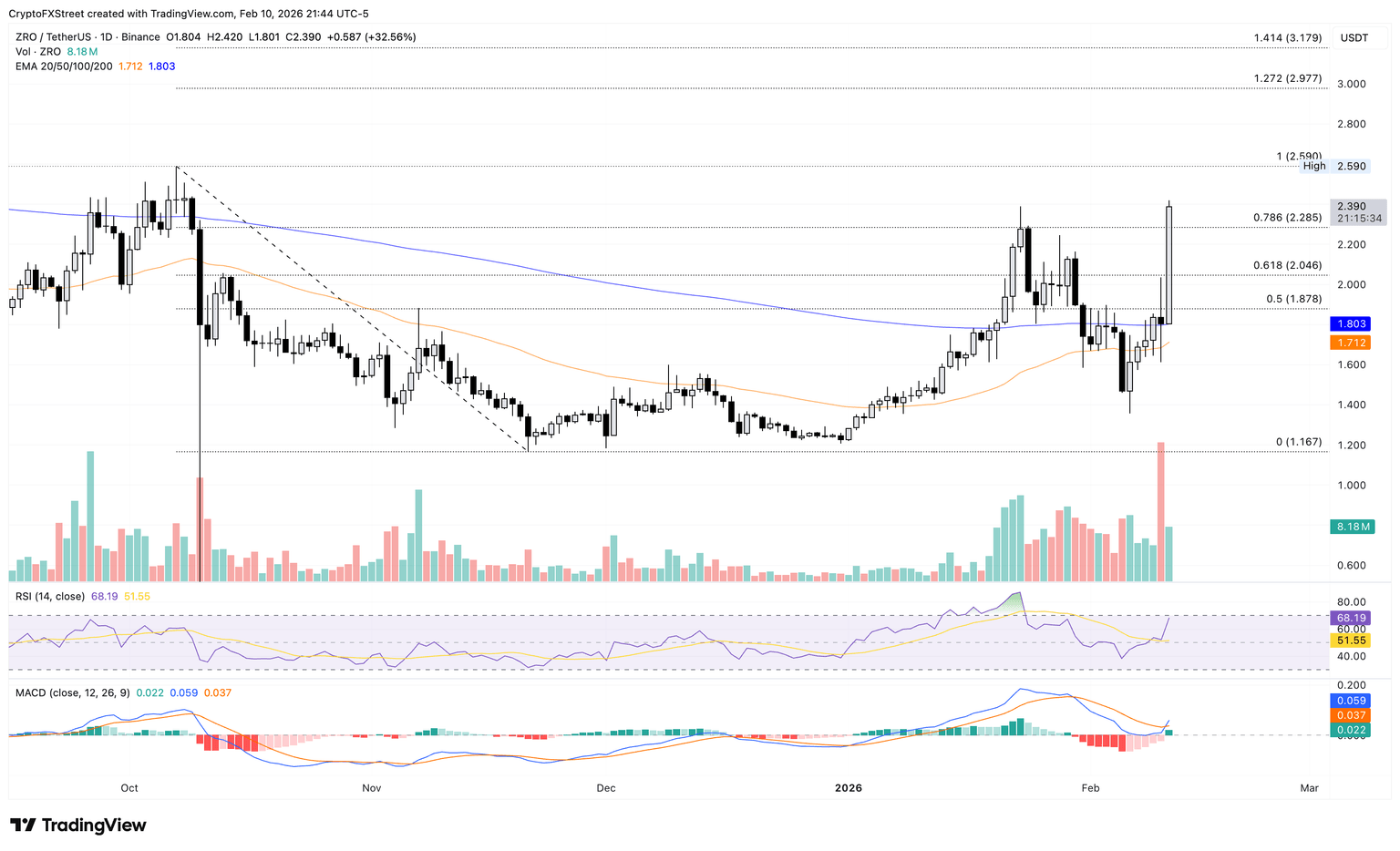 Sin embargo, si ZRO no logra mantener un cierre diario por encima de 2.28$, indicaría una presión significativa por encima y podría empujar el precio hacia el retroceso de Fibonacci del 61.8% en 2.046$.