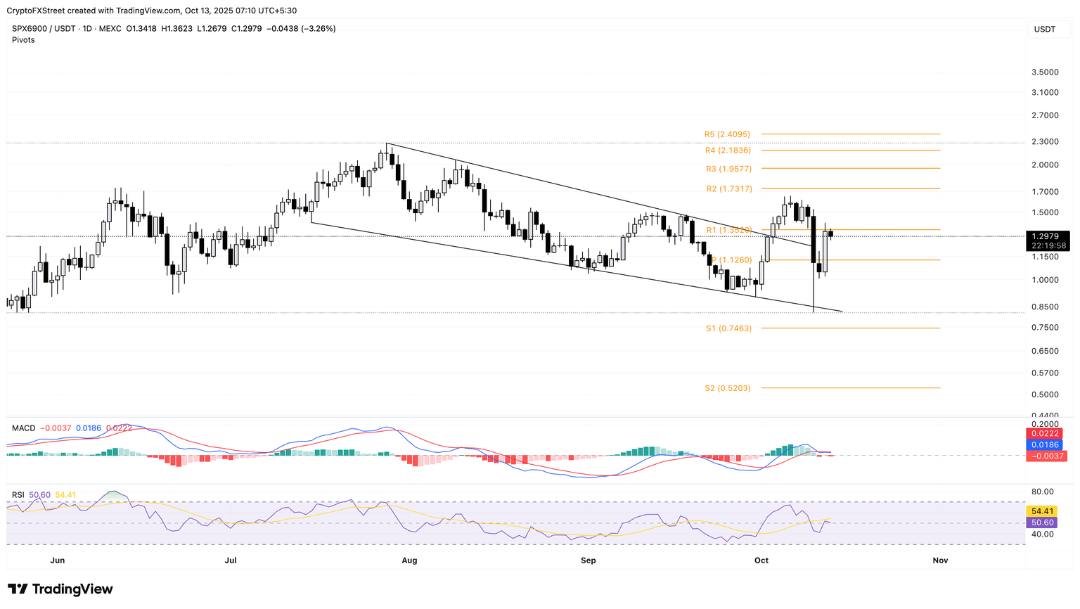 - SPX6900 se desliza a la baja tras el rebote del 28% el domingo, negociándose por encima de 1.25$.