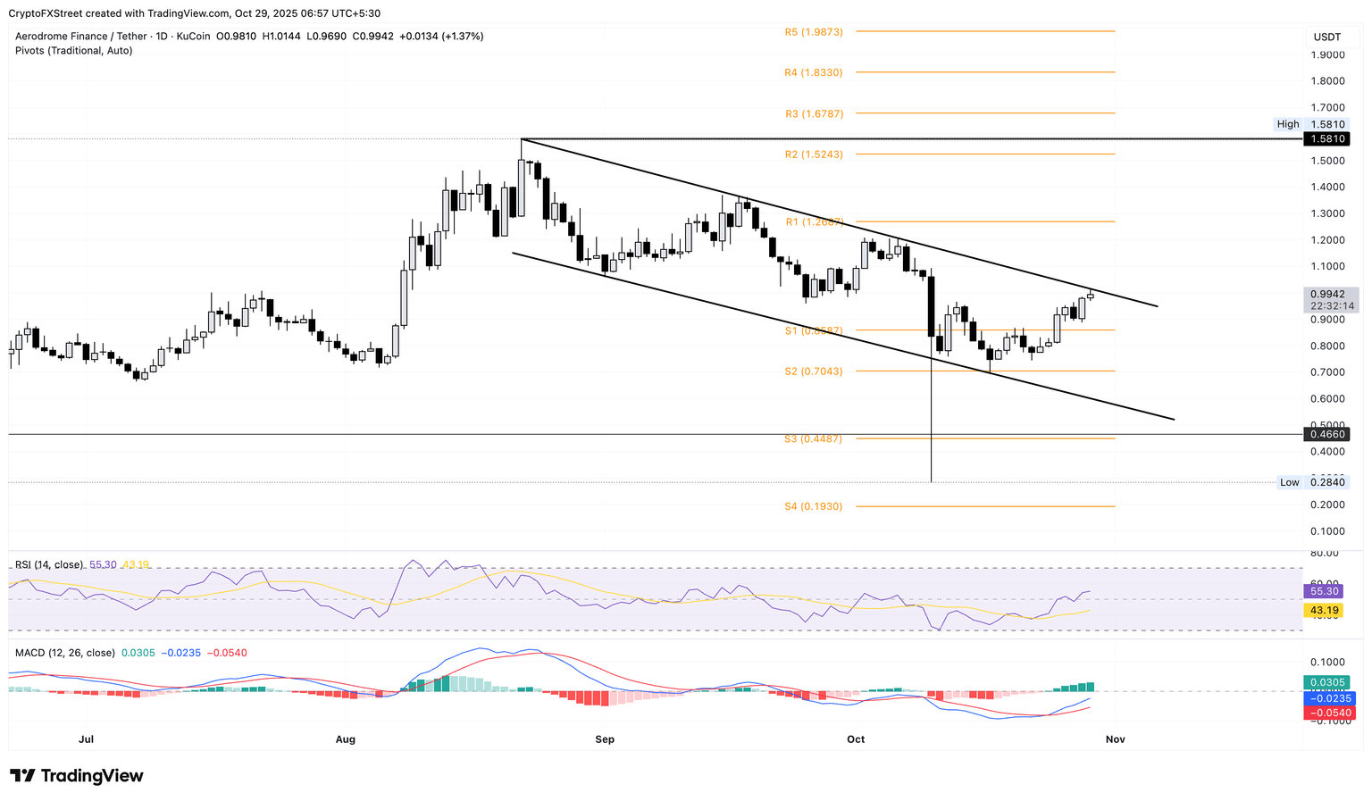 En el momento de escribir, AERO ha subido un 1% el miércoles en las horas de negociación asiáticas, extendiendo las ganancias del 8% del día anterior. La recuperación se acerca al nivel psicológico de 1$ y a una línea de tendencia de resistencia superior, que completa un patrón de canal descendente en el gráfico diario.