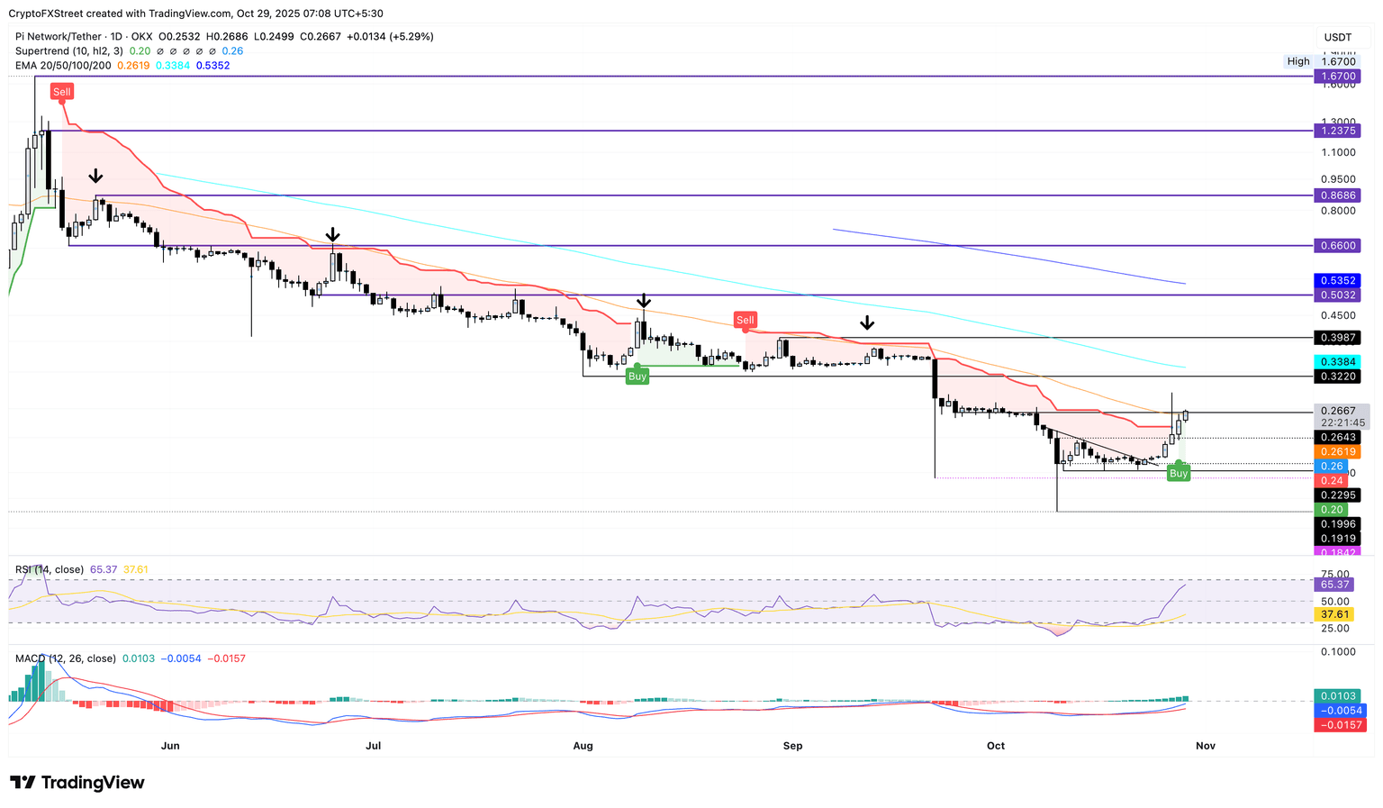 - Pi Network recupera el nivel de 0.2500$, con los toros apuntando a superar la EMA de 50 días.