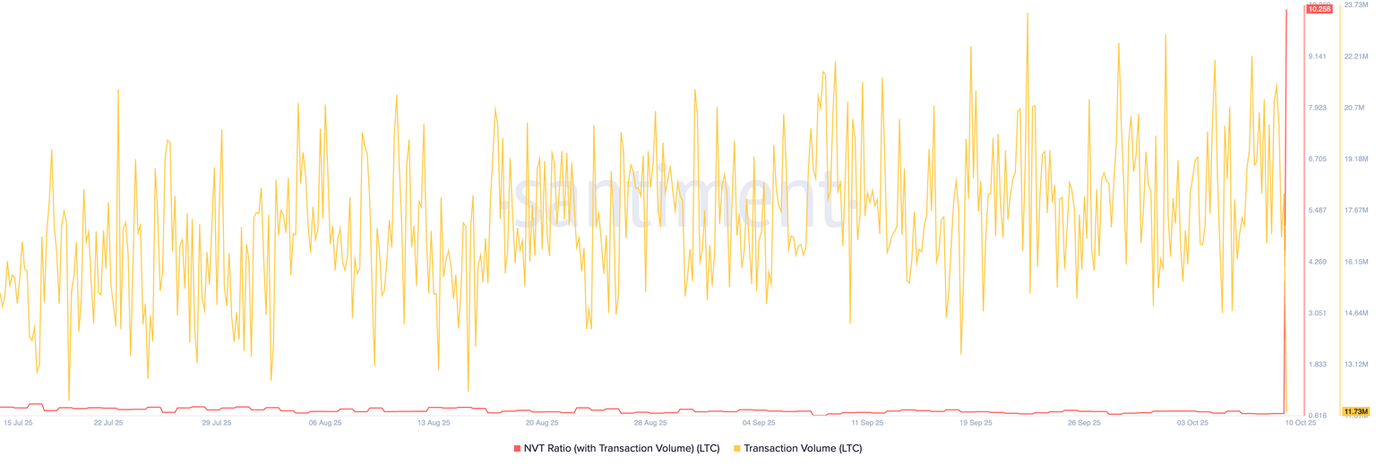 Relación NVT de Litecoin. Fuente: Santiment.
