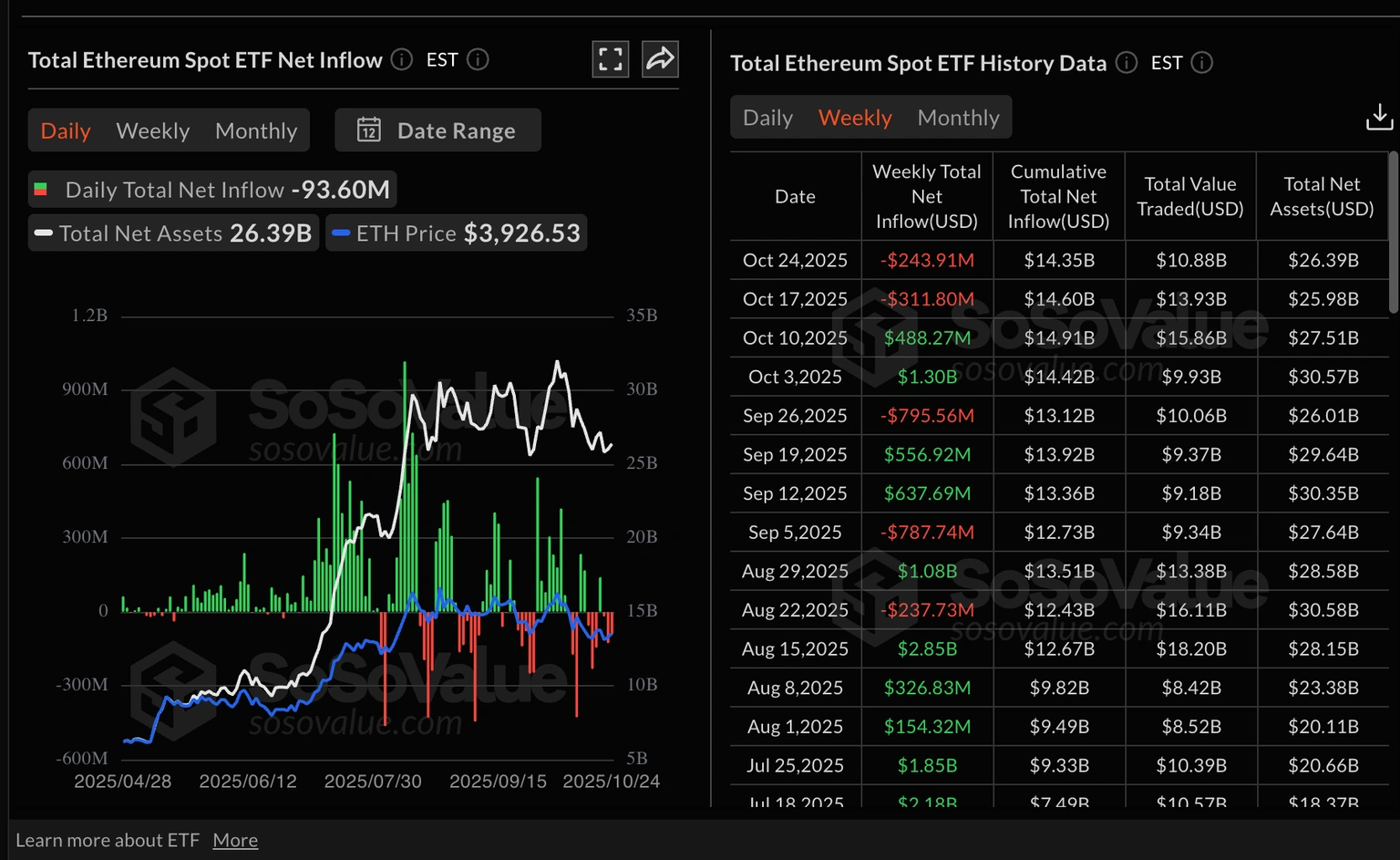 Estadísticas de ETFs de Ethereum | Fuente: CoinGlass