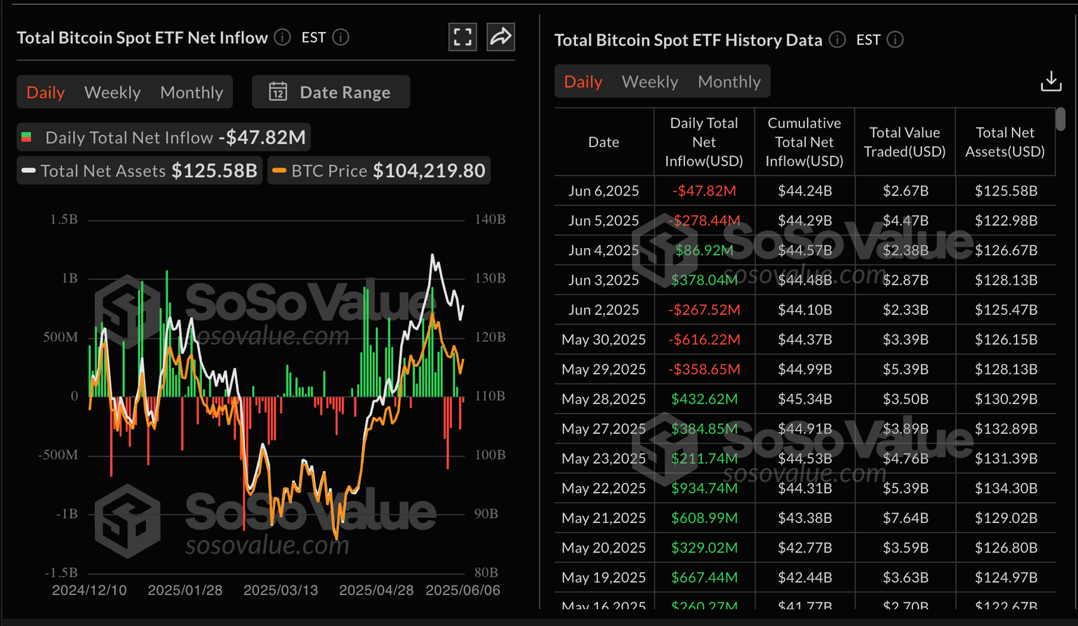 Estadísticas del ETF de Bitcoin al contado | Fuente: SoSoValue