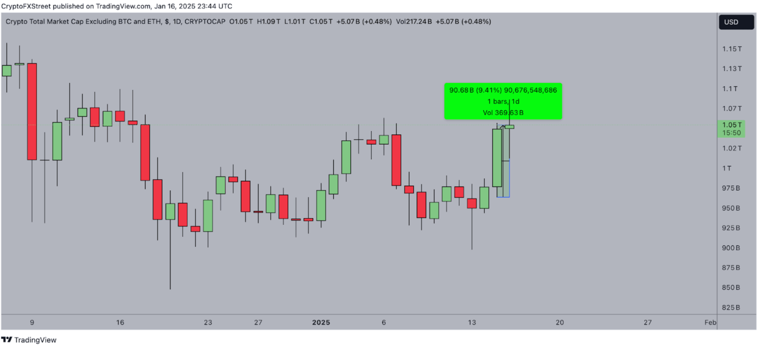 El TOTAL3 de TradingView representa el crecimiento de la capitalización del mercado de criptomonedas global, excluyendo Bitcoin y Ethereum.