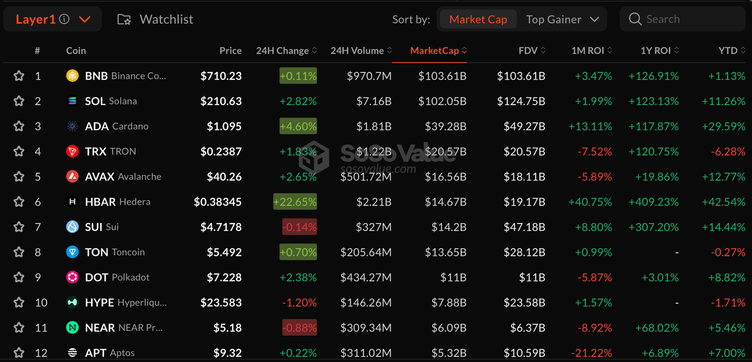 Gráfico del día: El sector de capa 1 sube un 2% mientras los operadores anticipan los ETF de altcoins