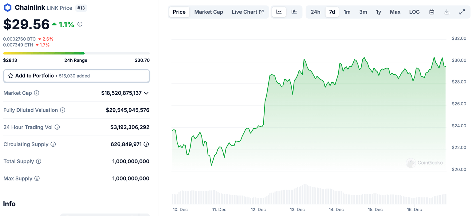 - Chainlink también obtuvo una considerable ganancia del 1.2% el lunes para superar la resistencia de 30$