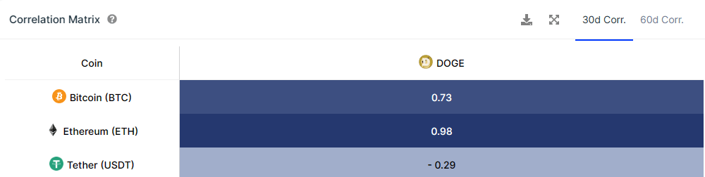 Con una correlación del 73% con Bitcoin (BTC), el precio de Dogecoin sigue los pasos de la criptomoneda insignia mientras sigue subiendo con 35.000$ en foco.