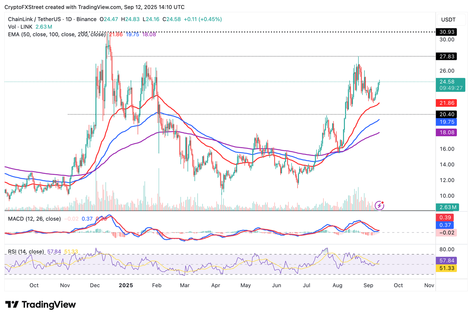 Los alcistas de Chainlink están en gran medida en control, respaldados por múltiples señales alcistas, incluida la señal de compra del indicador MACD, que está a punto de confirmarse en el gráfico diario.