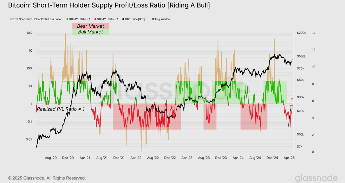 Junto con la métrica de beneficios no realizados, los analistas de Glassnode revelaron un aumento en la Relación de Beneficio/Pérdida de la Oferta STH a un nivel neutral de 1.0.