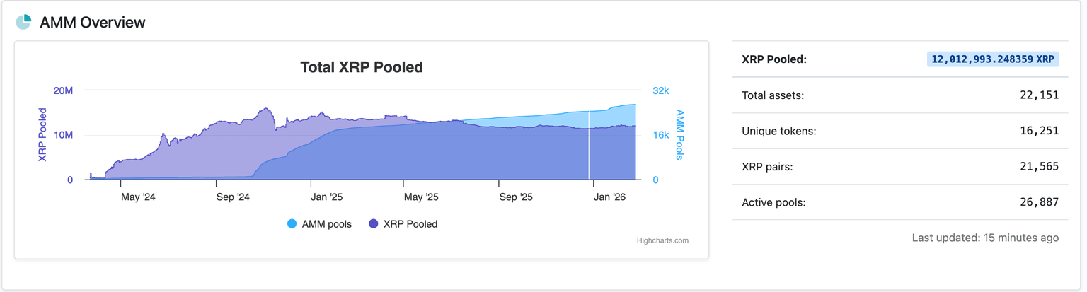 El XRPL AMM cuenta con una profundidad de liquidez de más de 11,5 millones de XRP, un mercado que está madurando gradualmente con mejoras estratégicas en curso, como la adopción de provisión de liquidez unidireccional y mecánicas de auto-puente refinadas.