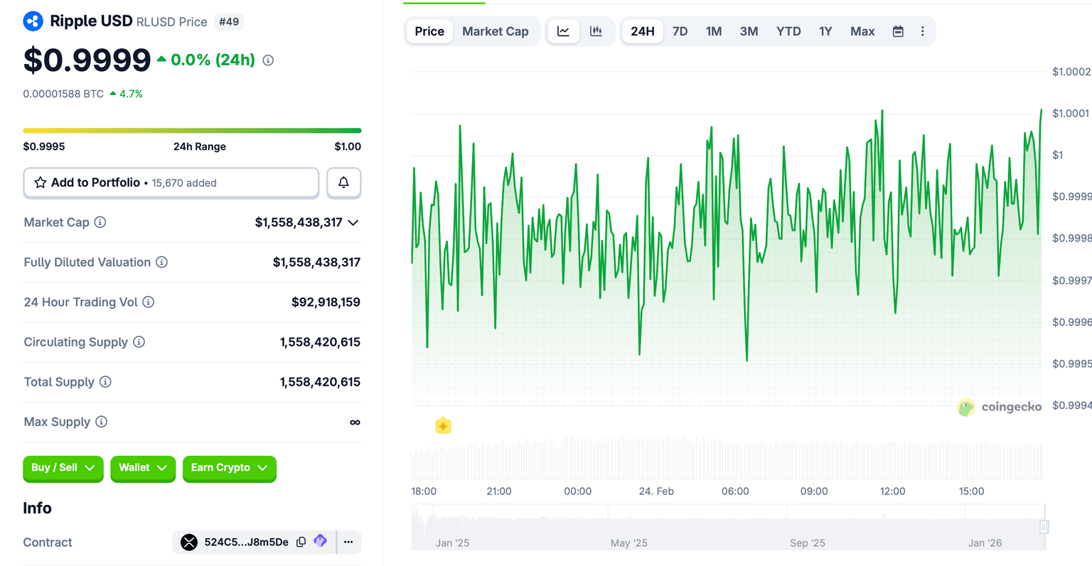 La capitalización de mercado de RLUSD se sitúa en 1.500 millones de dólares, según CoinGecko, y está disponible tanto en el XRP Ledger como en las blockchains de Ethereum.