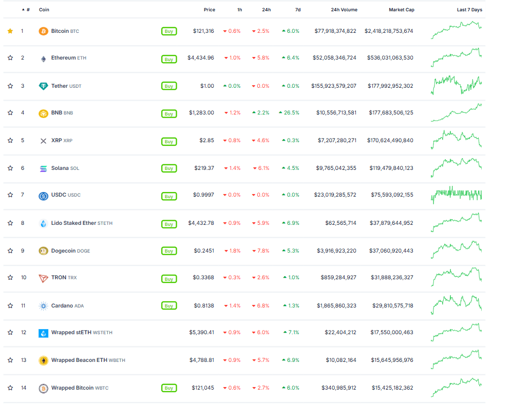 La semana comenzó positivamente para el mercado de criptomonedas, con precios en aumento a medida que Bitcoin (BTC) alcanzó un nuevo máximo histórico de 126.199$ el lunes, seguido por un aumento de las principales altcoins en conjunto con BTC. Sin embargo, las ganancias del mercado de criptomonedas se desvanecieron el martes, ya que la toma de beneficios hizo que BTC cayera más del 2.5% para cerrar por debajo de 121.500$. Además, los temores de un prolongado cierre del gobierno de EE.UU., que ahora está en su segunda semana, aumentan la incertidumbre económica y pesan sobre los activos de riesgo.