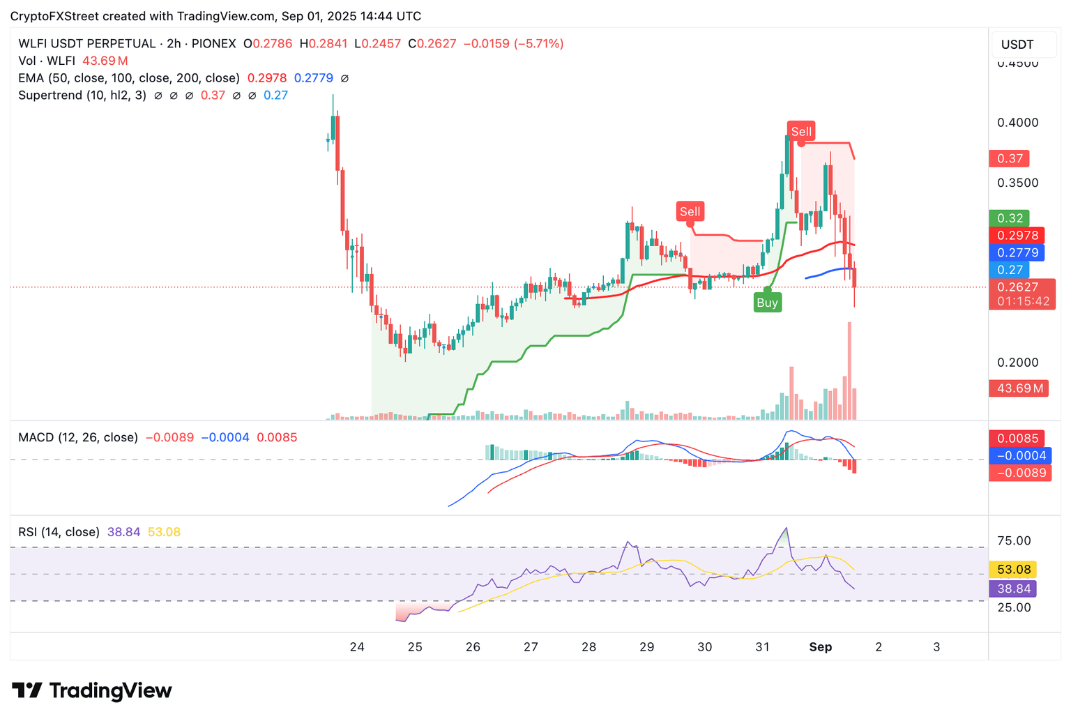 WLFI se cotiza alrededor de 0.25$, cayendo casi un 20% al momento de escribir. La caída tras el lanzamiento del comercio al contado refleja un cambio en el sentimiento del mercado, que inicialmente aumentó a su nivel más alto registrado.