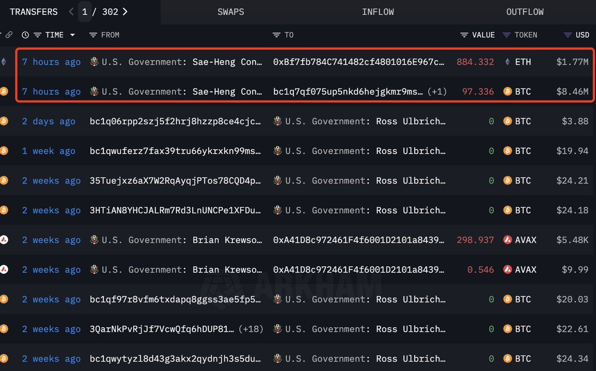 Citando datos de Arkham Intelligence, la plataforma de análisis cripto Lookonchain ha informado sobre una serie de transacciones vinculadas al gobierno de los Estados Unidos.