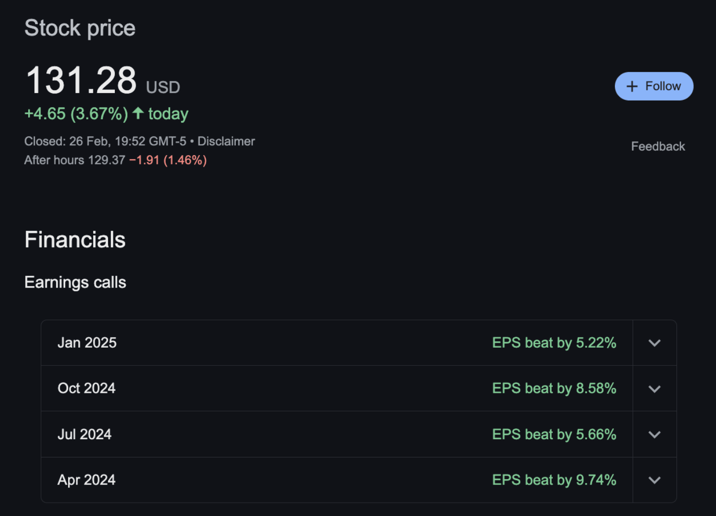 Las ganancias por acción según GAAP alcanzaron los 4.93 dólares, un salto del 33% respecto al trimestre anterior. El BPA no GAAP subió un 28% a 5.16 dólares.