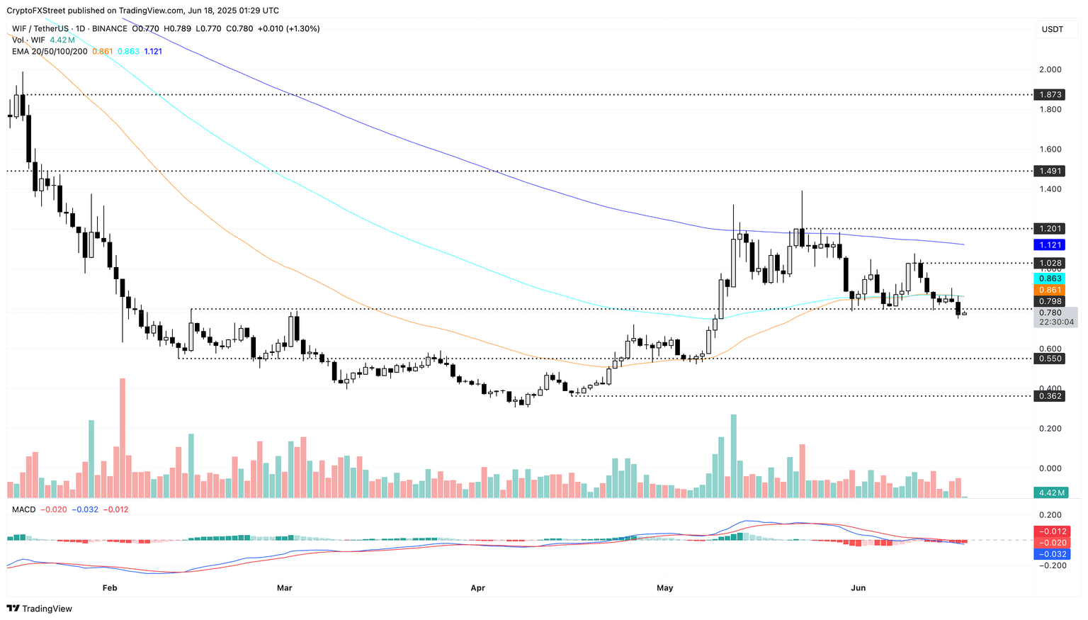 - Dogwifhat enfrenta un enorme riesgo a la baja al romper por debajo de un nivel de soporte crucial.