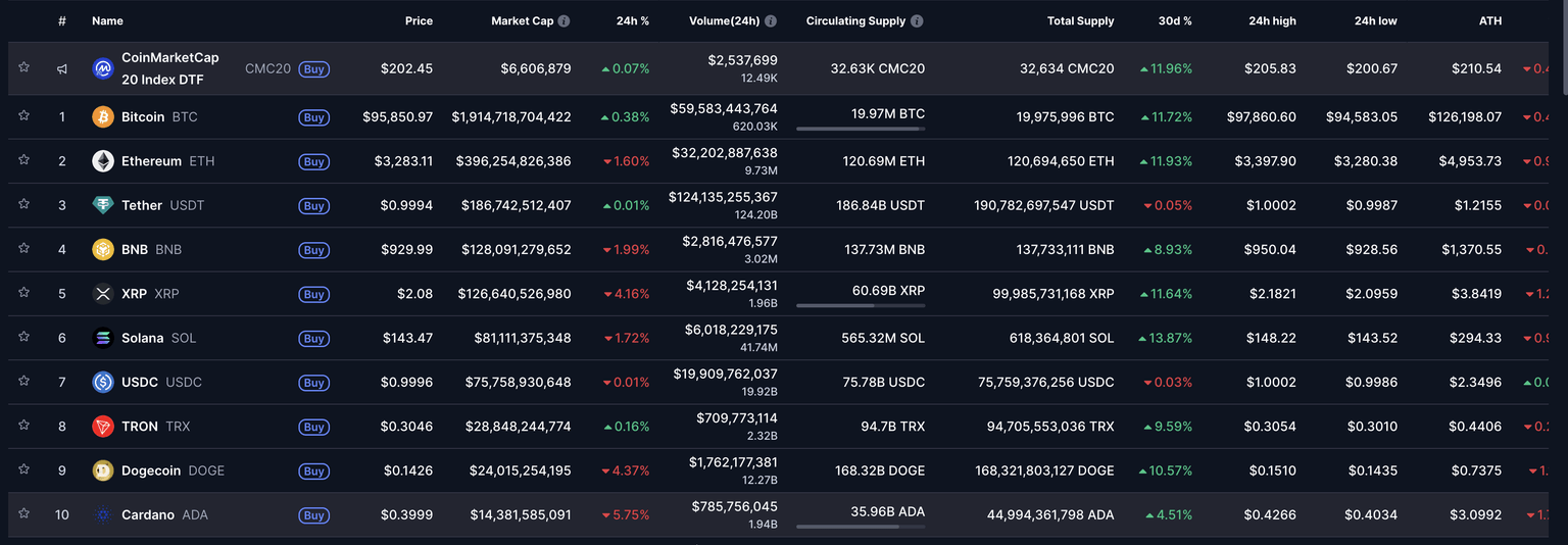 En línea con la caída en BTC, altcoins como Ethereum, XRP, Solana y Dogecoin (DOGE) están bajando aproximadamente entre un 2% y un 4%.