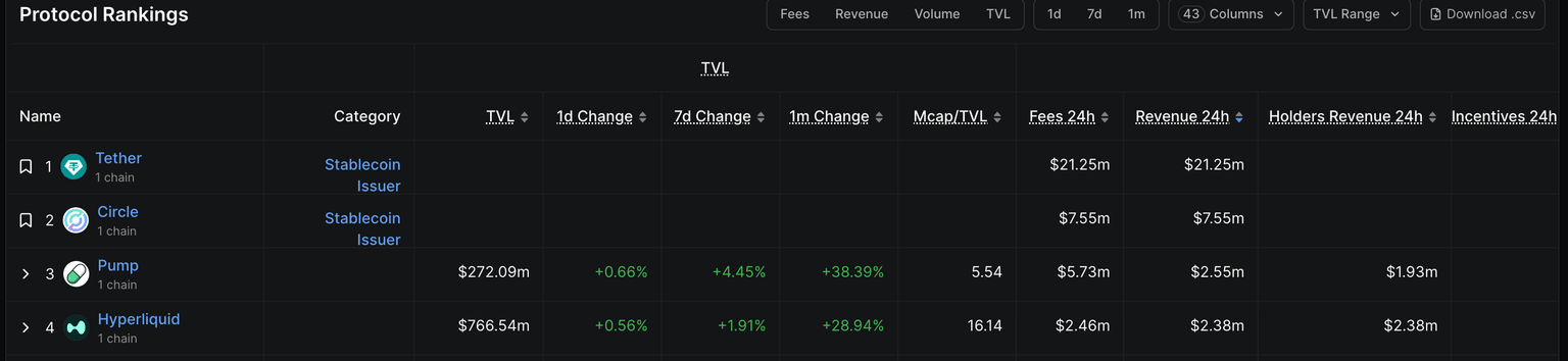 - El nuevo modelo de comisiones para creadores de Pump.fun aumenta los ingresos, superando a Hyperliquid en las últimas 24 horas.