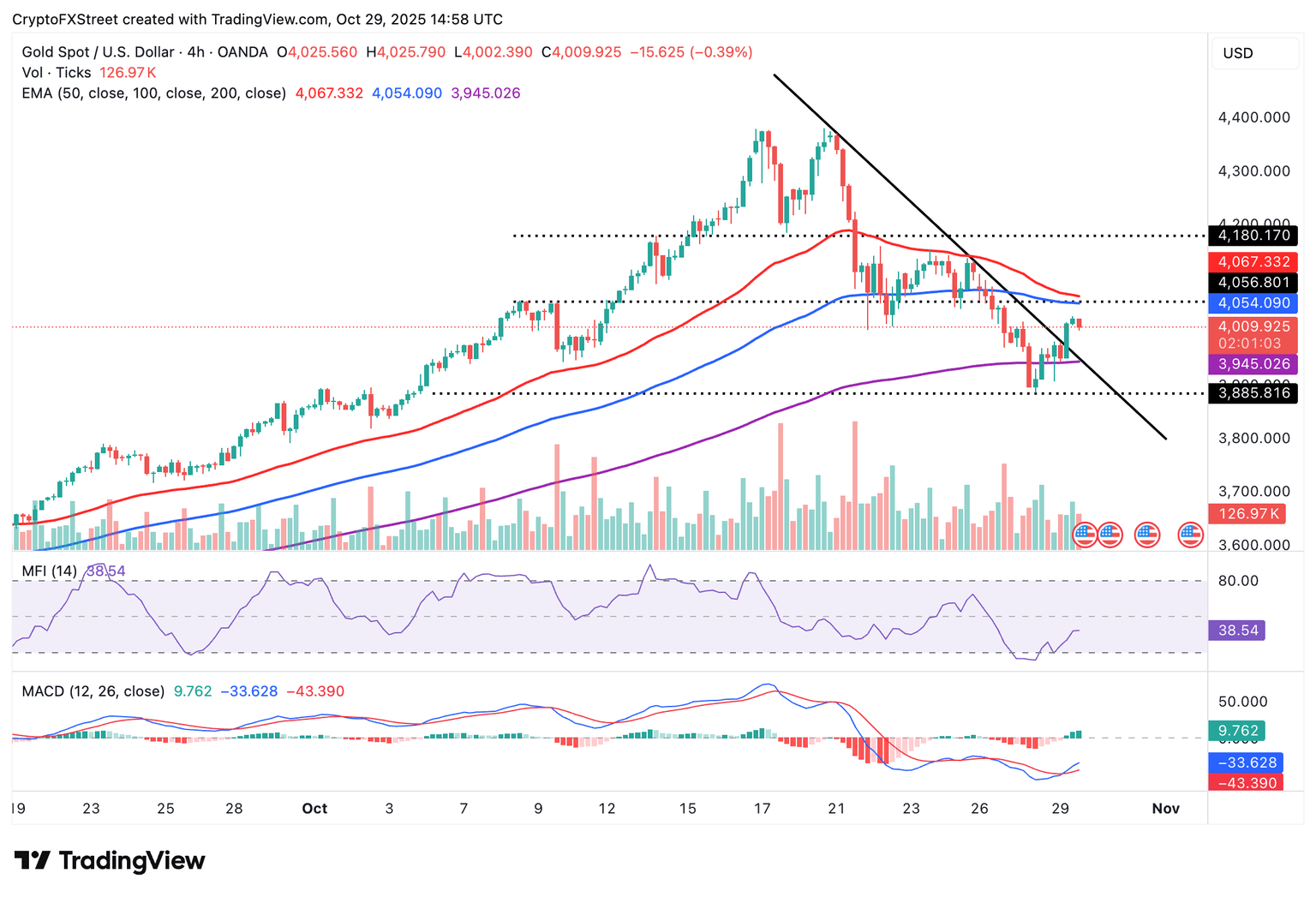 El Oro se cotiza por encima de 4.000$ por onza en el momento de escribir este artículo el miércoles. El metal precioso amarillo ha extendido la caída desde su máximo histórico de 4.381$ alcanzado el 20 de octubre, en medio de posibles tomas de ganancias y diversificación de portafolios.