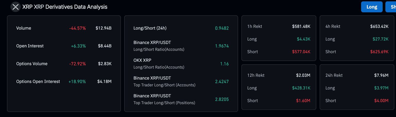 Estadísticas del mercado de derivados de XRP | Fuente: CoinGlass