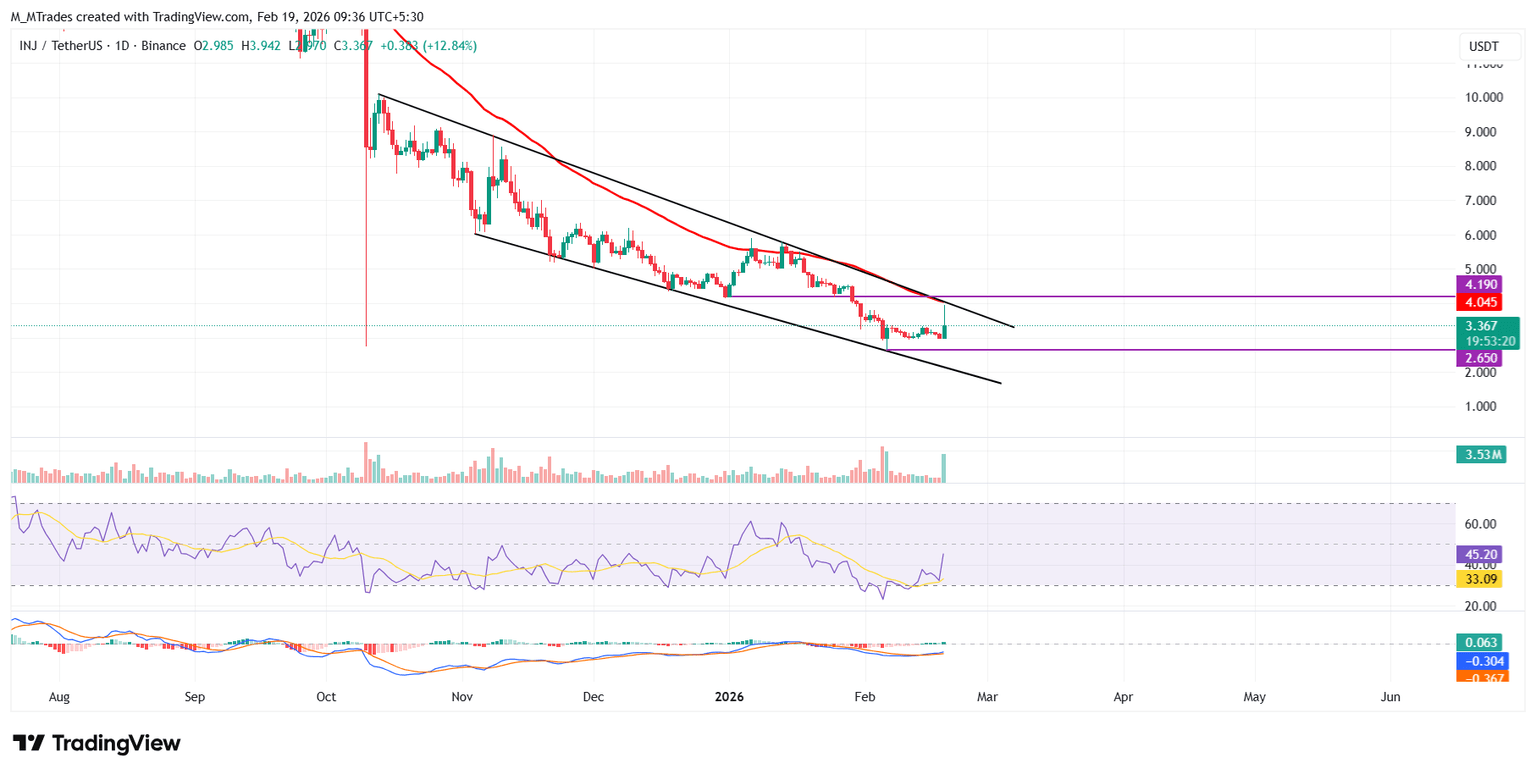Si INJ rompe y cierra por encima de este límite de línea de tendencia, podría extender el repunte hacia el nivel psicológico clave en 5$.