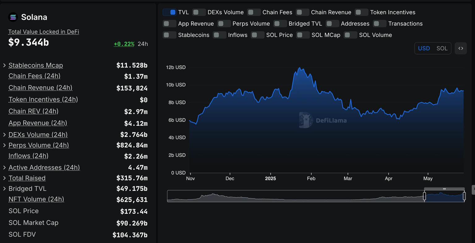 El TVL DeFi de Solana se mantiene por encima de 9 mil millones de dólares