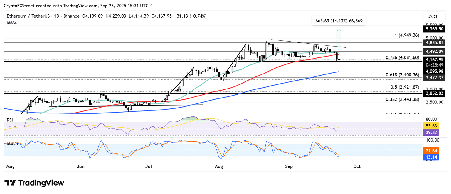 Pronóstico de Ethereum: Los bajistas continúan probando el soporte cerca de 4.100$ en medio de condiciones de sobreventa