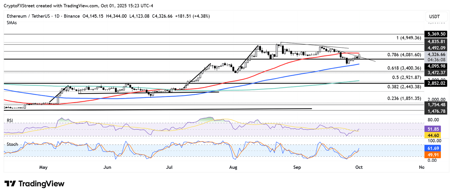 Pronóstico de Ethereum: ETH supera la resistencia de línea de tendencia descendente, apunta a la SMA de 50 días