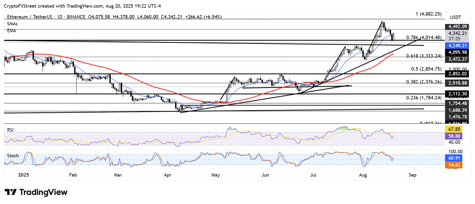 - ETH rebota en el soporte de 4.100$ mientras apunta a una recuperación del nivel clave de 4.500$.