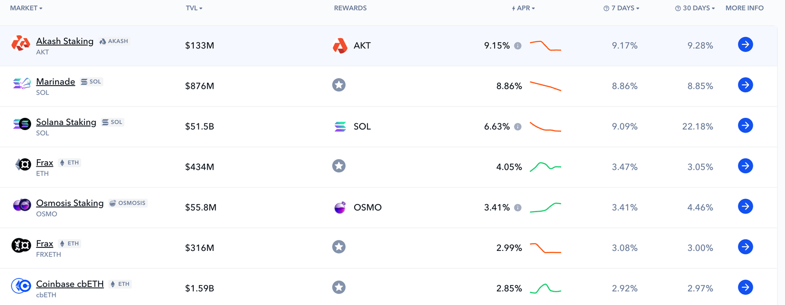 Los inversores podrían comparar las recompensas de staking en sitios web como Bitcompare o Stakingrewards.