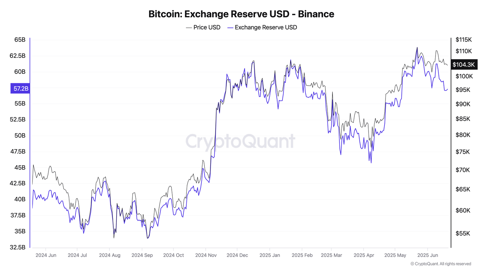 CryptoQuant arroja luz sobre el estado del saldo de intercambio de Bitcoin, que ha disminuido drásticamente a casi 57 mil millones de dólares, como se muestra en el gráfico de Reservas de Intercambio a continuación. A medida que el valor extiende la caída tras el pico de alrededor de 64 mil millones de dólares el 22 de mayo, indica una posible reducción en la presión de venta. Los inversores a menudo transfieren Bitcoin de los intercambios a almacenamiento en autocustodia, lo que indica una preferencia por la tenencia a largo plazo y refleja confianza en el rendimiento futuro del Bitcoin.
