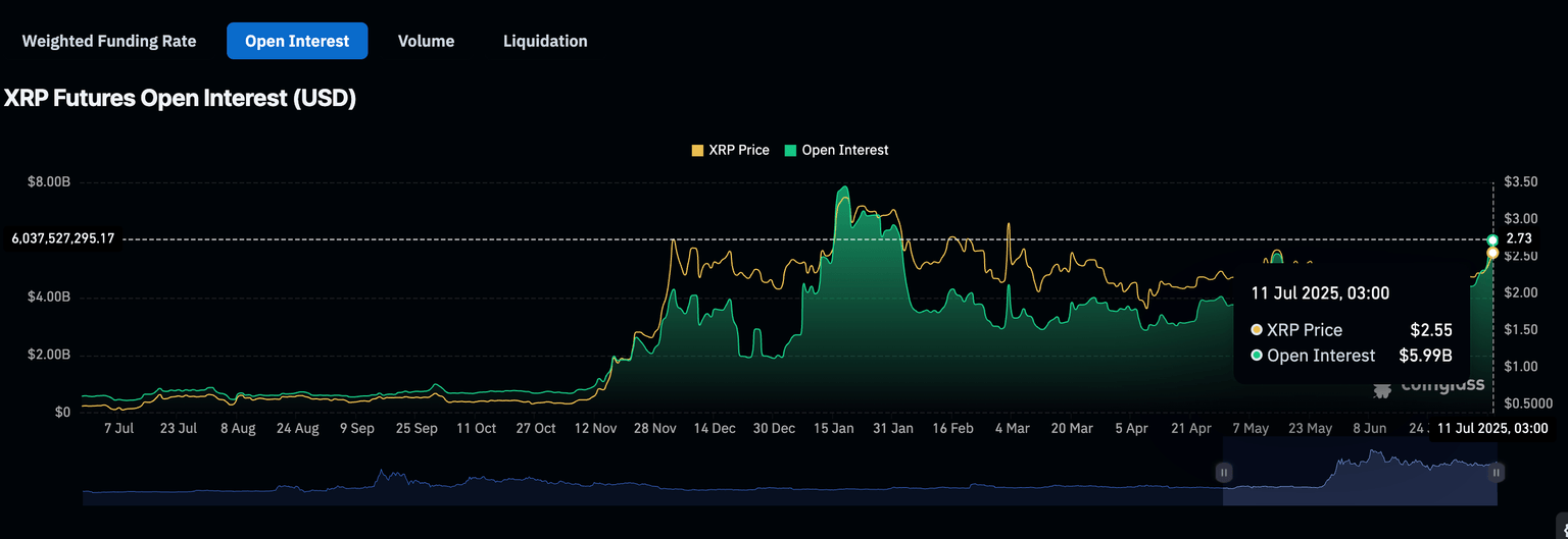 Interés abierto de futuros de XRP | Fuente: CoinGlass