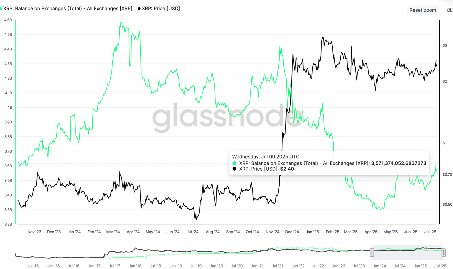 - Los inversores pueden estar preparándose para tomar beneficios a medida que los saldos de intercambio aumentan a 3.5 mil millones de XRP.
