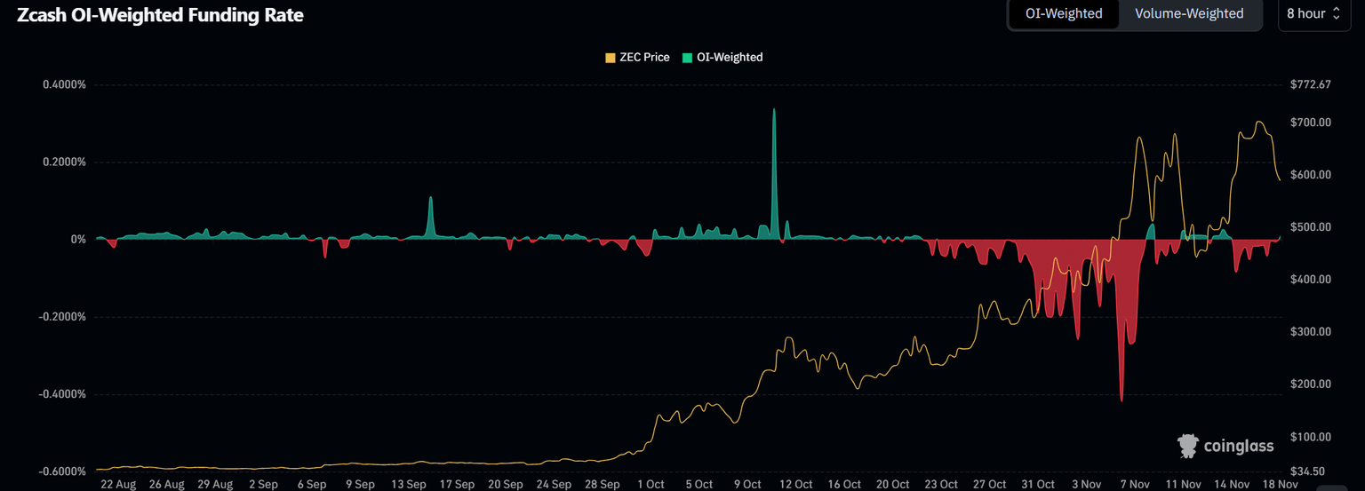Las tasas de financiación de la moneda de privacidad han continuado mostrando cifras negativas en el último mes a pesar de su fuerte rendimiento. Esto indica que el precio de ZEC ha sido en gran medida impulsado por el momentum de los operadores en el mercado al contado.