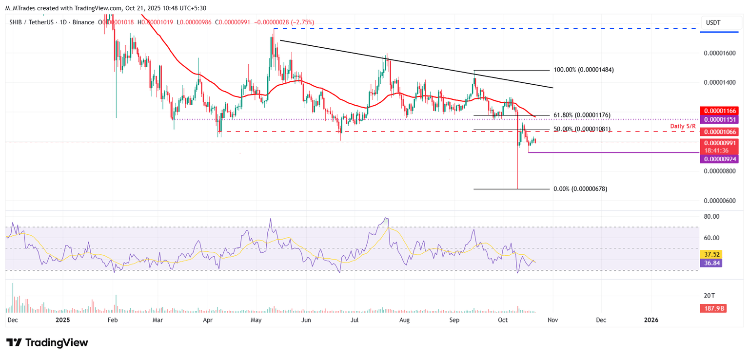 El precio de Shiba Inu se recuperó ligeramente durante el fin de semana tras una caída masiva el viernes. En el momento de escribir el martes, está en declive cotizando por debajo de 0.0000099$.