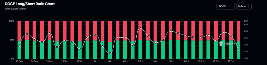 Gráfico de relación larga a corta de Dogecoin. Fuente: Coinglass